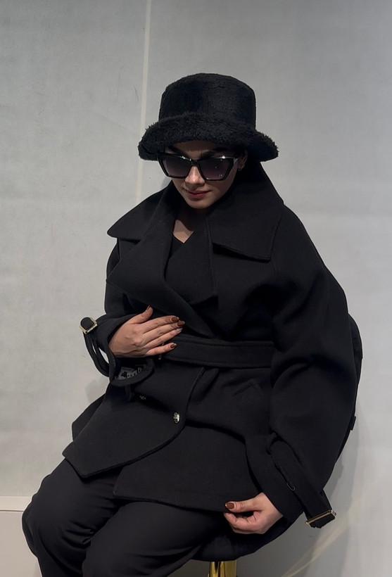 پالتو فوتر زنانه رنگبندی مشکی، طوسی، کرم استخونی