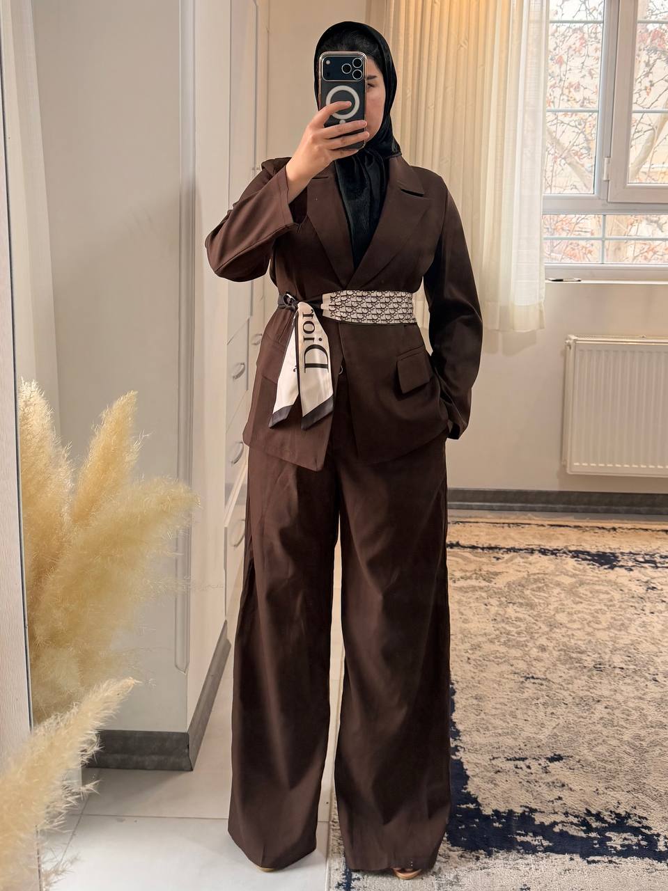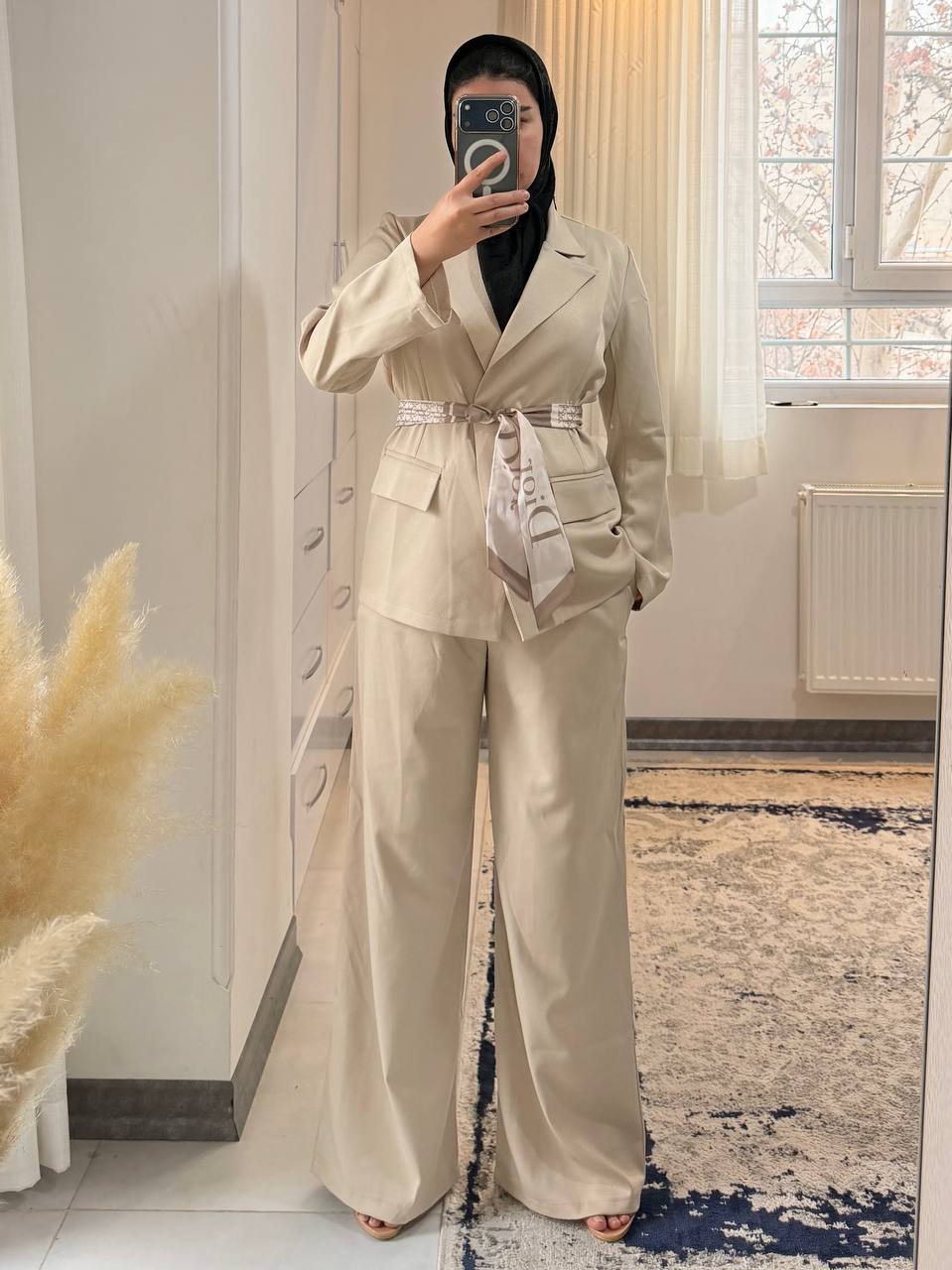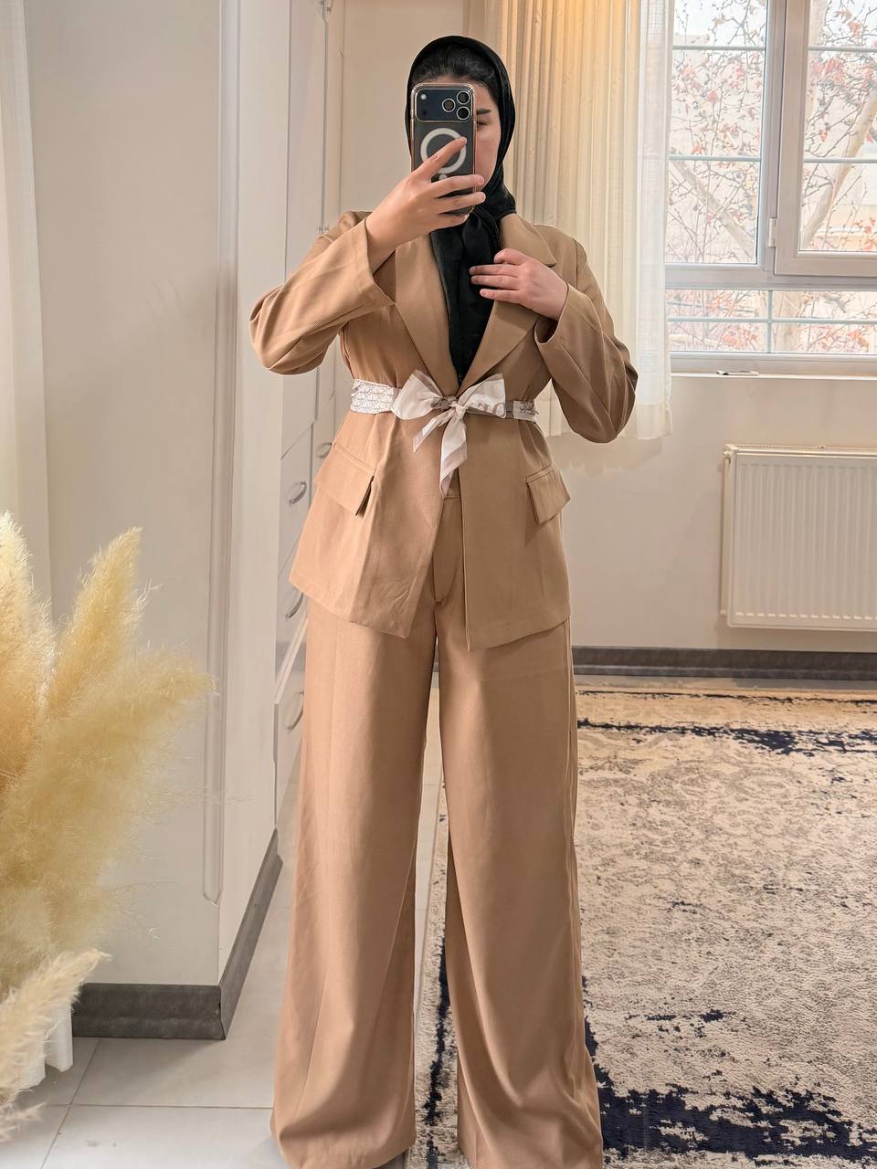 همراه با کمربند پارچه ای